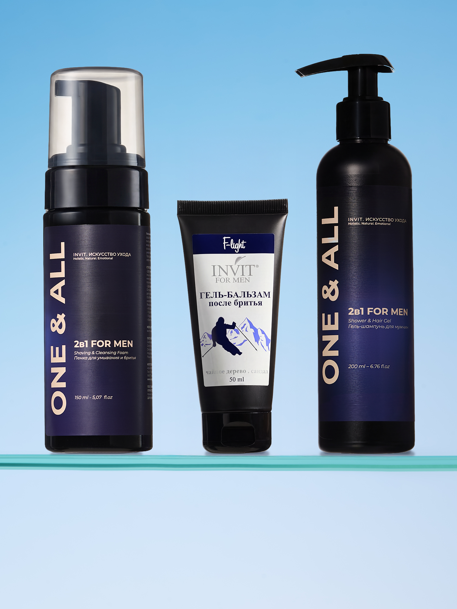 Набор подойдёт для всех типов кожи и волос. Он работает как продуманная система: пенка закладывает основу чистоты и комфорта, гель после бритья фиксирует уход, а универсальный гель-шампунь завершает образ свежести. Вместе они создают ощущение уверенности и ухоженности — будто вы всегда готовы к новому дню.