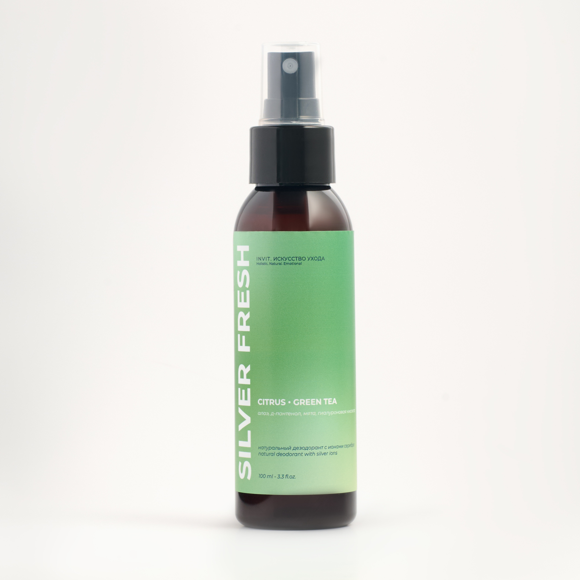 Натуральный минеральный дезодорант-спрей Silver Fresh на основе кристаллических квасцов с ионами серебра эффективно защищает от запаха пота и обеспечивает ощущение свежести на весь день.